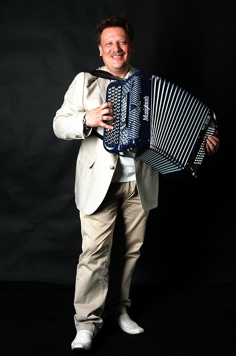 Haatainen spelar dragspel. Matservering för 60 kronor.